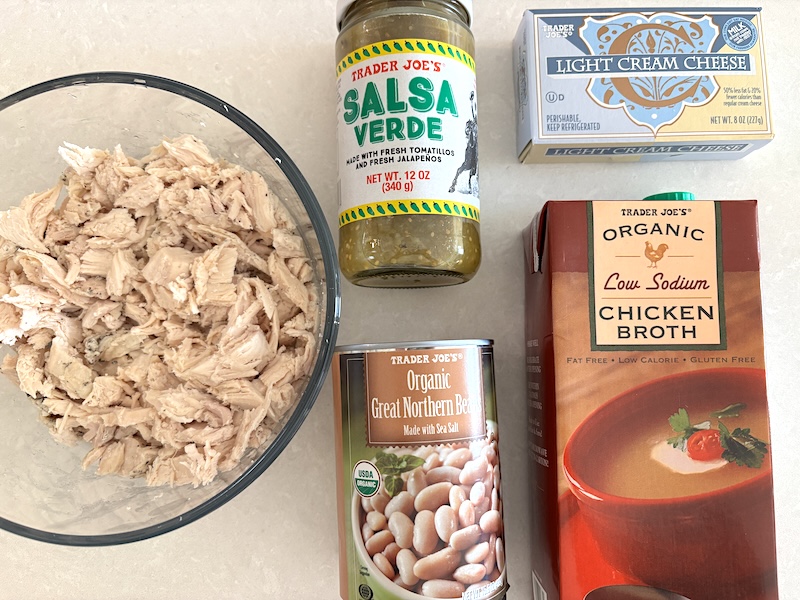 - Salsa verde: The star of this recipe! Infuses the chili with a ton of flavor, including all of the seasonings and spices. It also gives the chili a tangy flavor. I used the one from Trader Joe’s which wasn’t all that spicy.