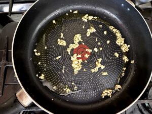 In a large deep skillet, heat the olive oil over medium heat. Add the minced garlic and cook for about 1-2 minutes until light golden brown. Watch closely and stir frequently to make sure the garlic doesn’t burn!