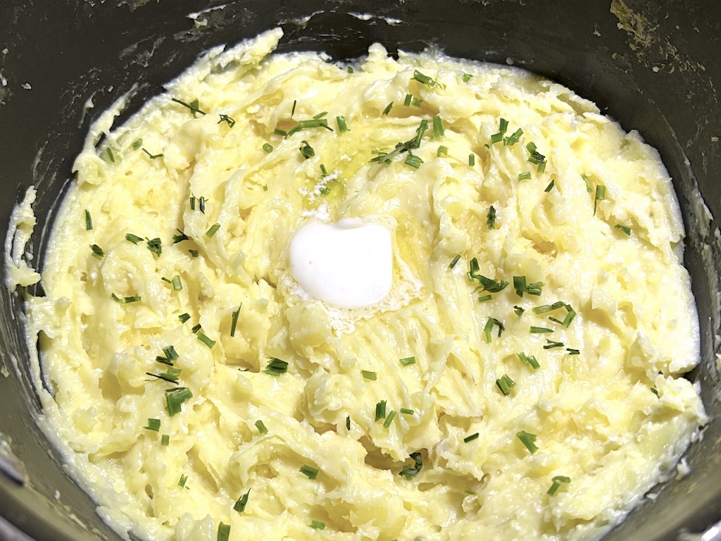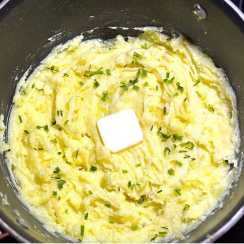 There’s so many ways you can eat these mashed potatoes – by itself, with gravy, or even made into potato pancakes!