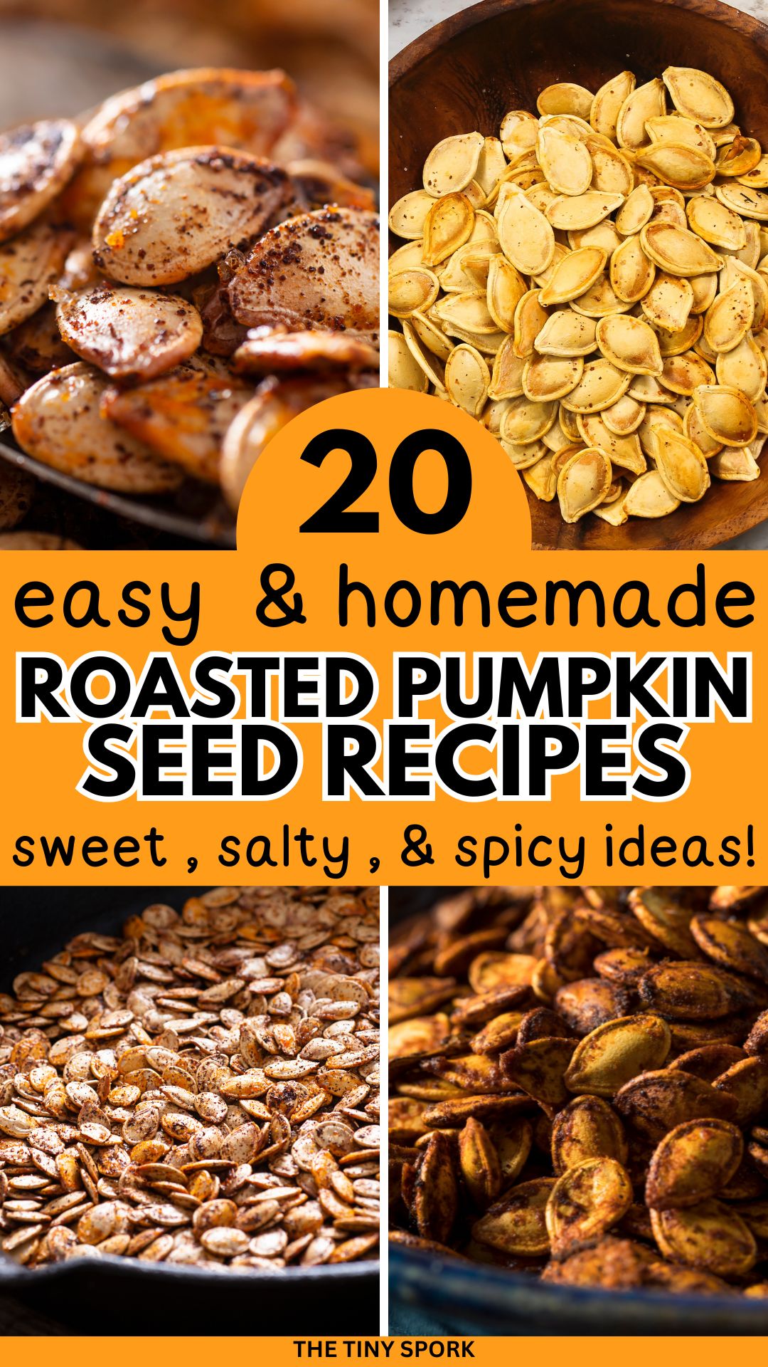 In this post, I’m sharing my roundup of 20 easy homemade roasted pumpkin seed recipes – including sweet, spicy, & savory options.