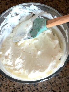- Add the Greek yogurt to the mixing bowl and stir until combined with the cream cheese.