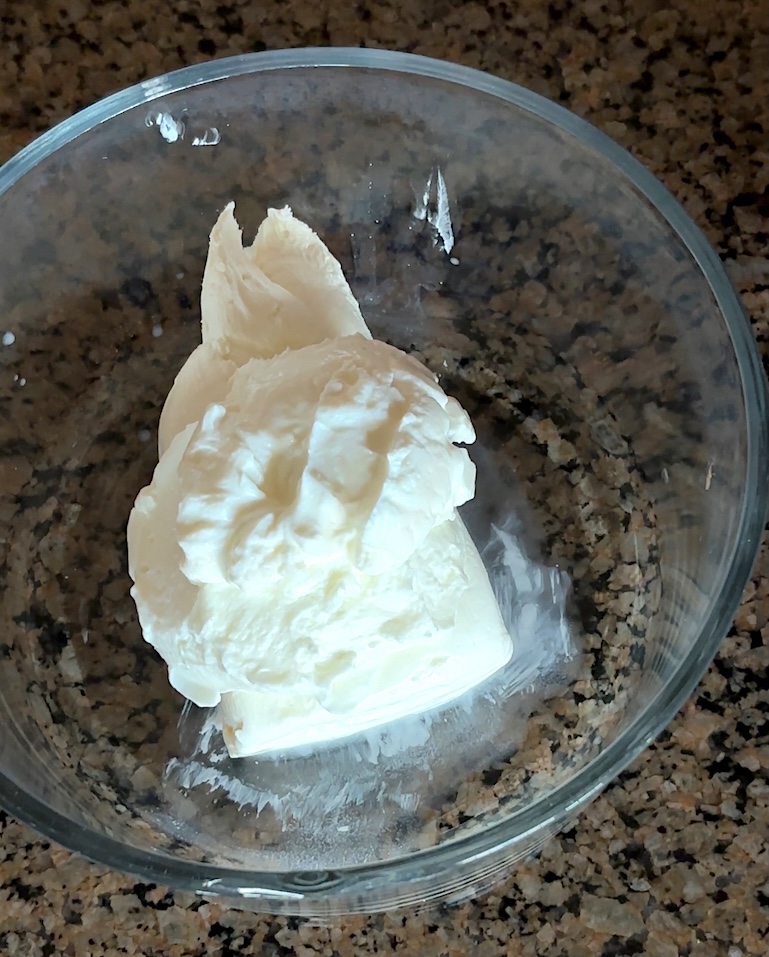 - Add the softened cream cheese to a mixing bowl. Beat until smooth.