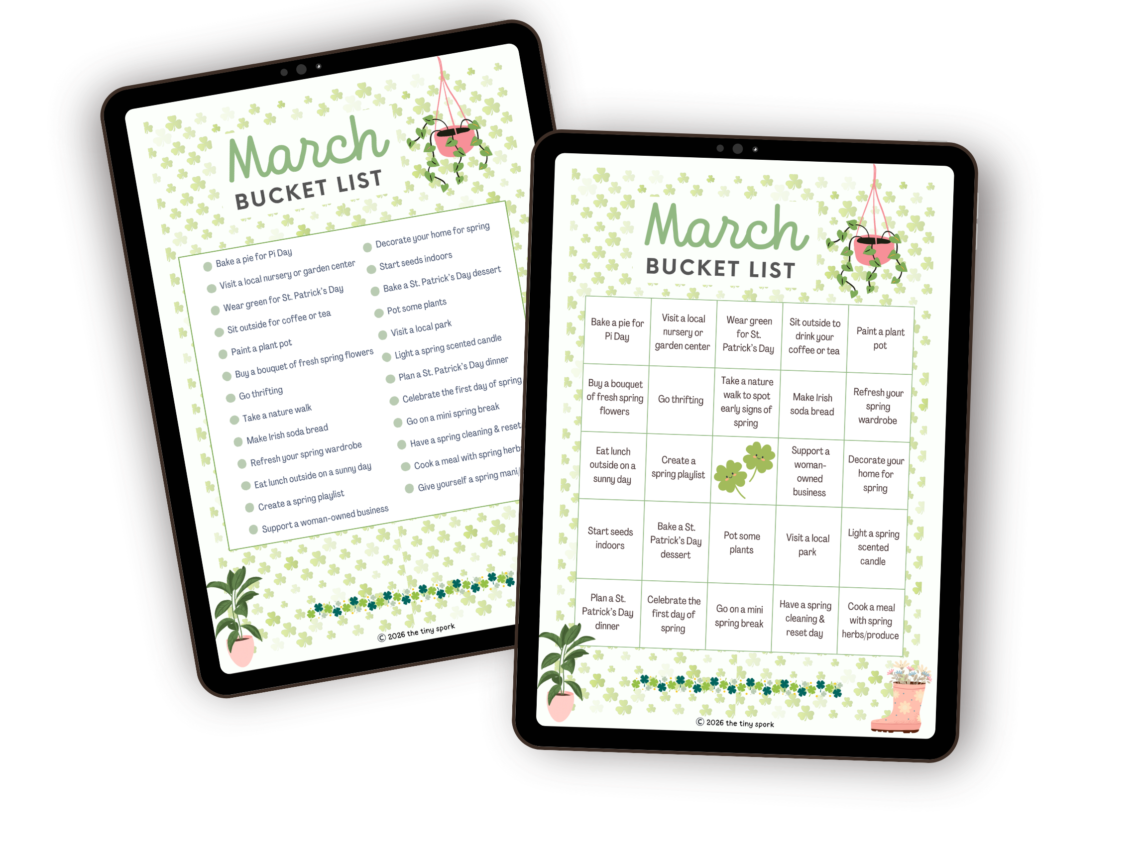 Join my email list to get the FREE printable March bucket list + bingo card sent straight to your inbox! As a bonus, I’ll also send you a brand new bucket list every month full of cozy seasonal activities! 💖