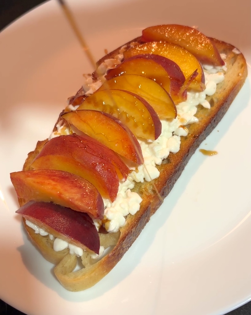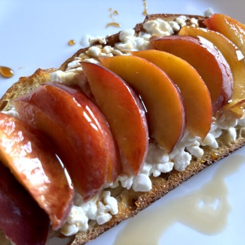 4-Ingredient Peach Cottage Cheese Toast with Honey