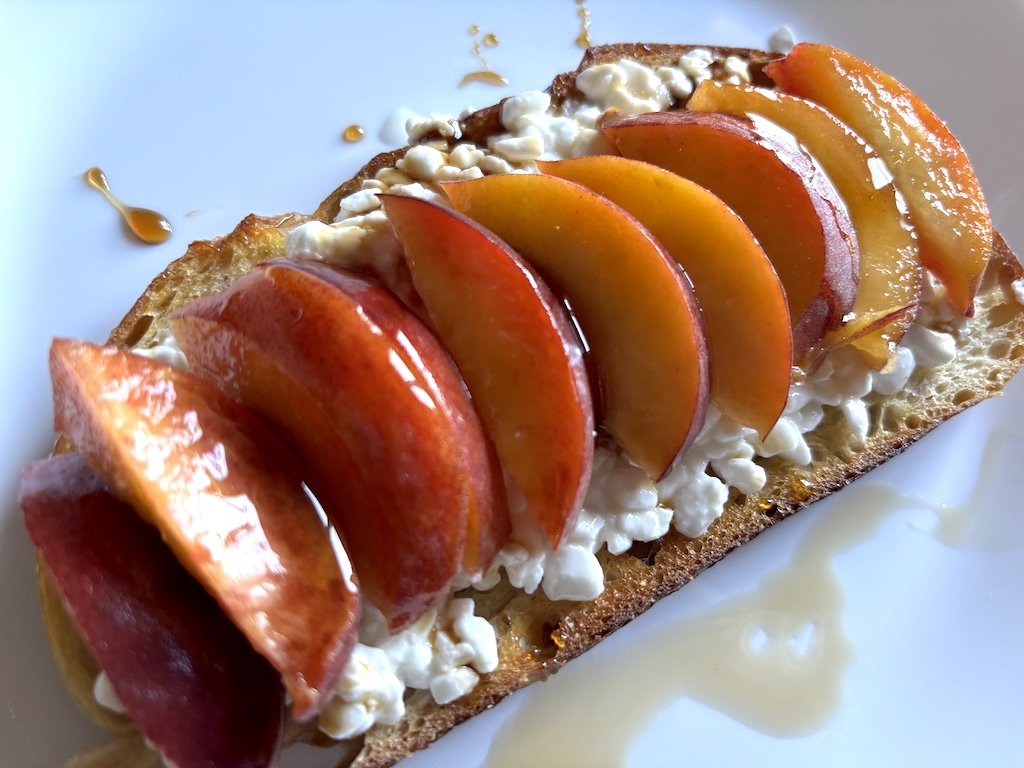 Cottage cheese can have a little bit of tangy taste to it, which makes it perfect for pairing with ripe peaches. I think even blueberries or strawberries would make amazing cottage cheese toasts!